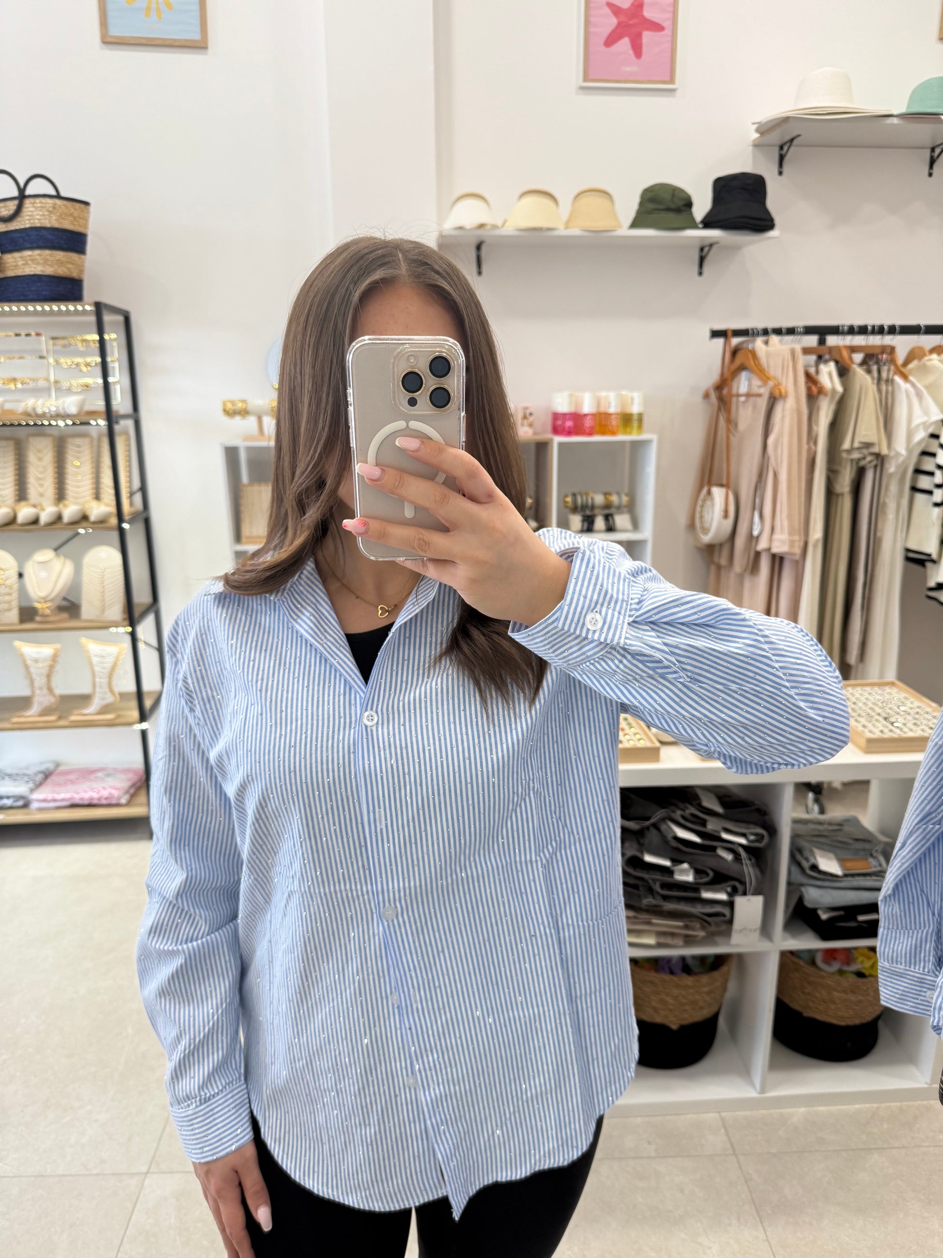 Chemise bleu à rayures et paillettes