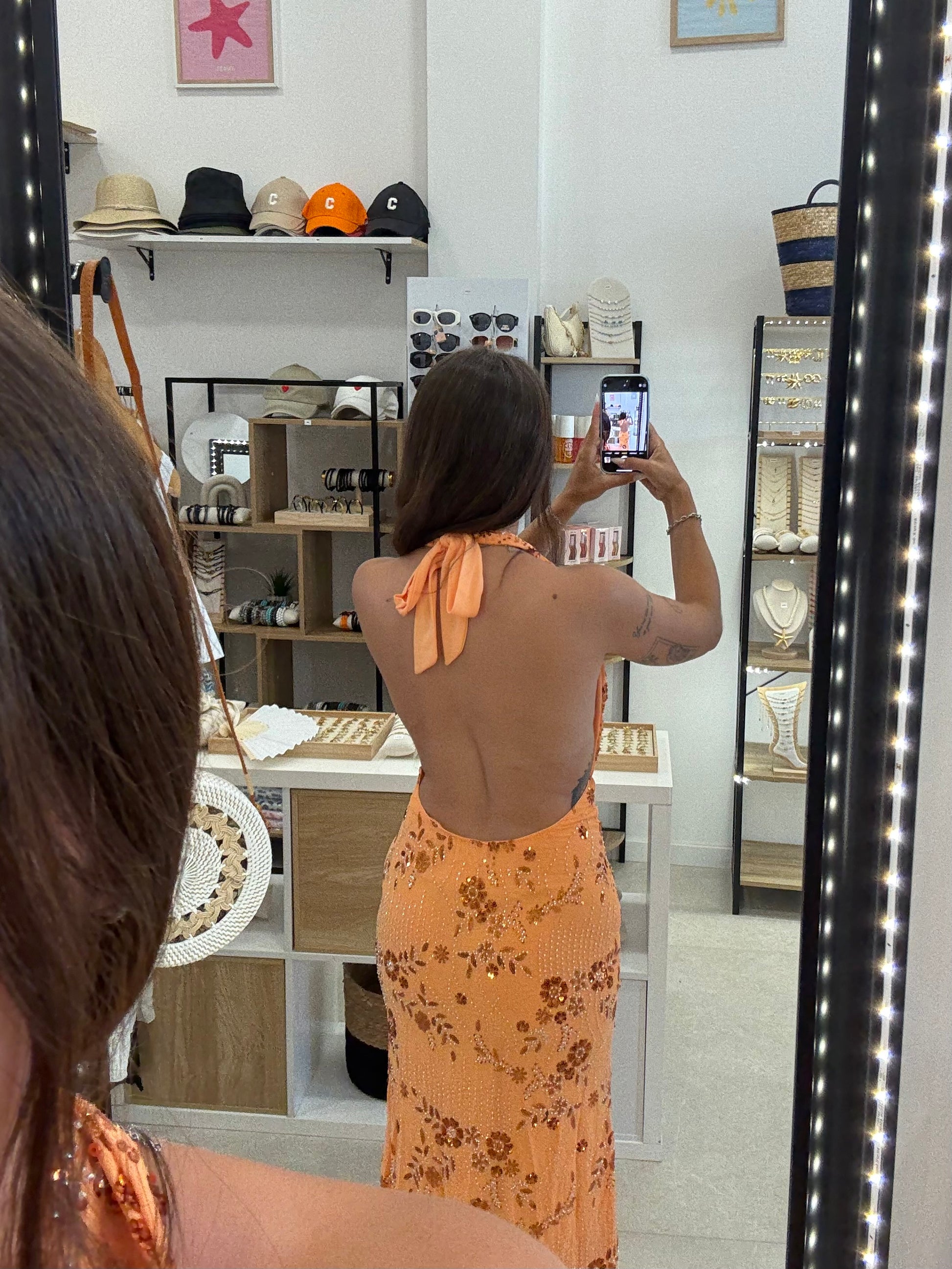 Robe longue orange à sequins